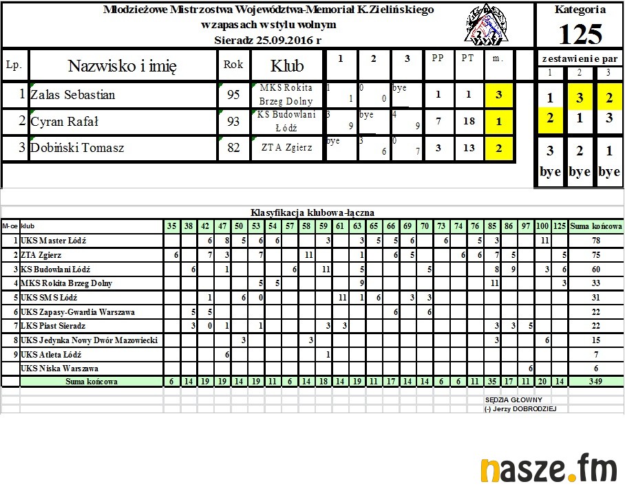 Nie mogło zabraknąć zapaśników z Brzegu Dolnego, czyli z klubu zaprzyjaźnionego z LKS Piast Sieradz, poza tym na zawody przyjechali zawodnicy z Mazowsza i woj. łódzkiego. - Jest ciężko, bo organizacja takich zawodów spada praktycznie na dwie osoby, poza mną jest to oczywiście prezes LKS Piast - Maciej Sulgan - mówi Zbigniew Maryan, kiedyś świetny zapaśnik, a obecnie trener Piasta. - Cieszymy się bardzo, że pojawili się dziś rodzice naszych najmłodszych zawodników, ich zaangażowanie sprawi być może, że ta nowa grupa będzie się rozwijać. Początki są oczywiście trudne, dziś nasi najmłodsi wychowankowie walczą ze starszymi od siebie, ale gdzieś muszą się uczyć - dodaje Maryan. Jednym z widzów obserwujących dzisiejszy turniej był Ryszard Klimas, były zapaśnik, później trener, który na Igrzyskach Olimpijskich w Barcelonie był asystentem trenerów kadry zarówno w stylu wolnym, jak i klasycznym. Obecnie działa w Polskim Związku Zapaśniczym, jest także cenionym trenerem w Sankt Petersburgu w Rosji. Ostatnio dwie podopieczne Klimasa wywalczyły medale igrzysk w Rio. - Pamiętam, gdy sam walczyłem w tym turnieju, to zawsze była wizytówka sieradzkich zapasów, cieszę się, że impreza wciąż się odbywa i mam nadzieję, że w przyszłym roku na jubileusz klubu uda się zorganizować te zawody z większym rozmachem, może uda się zaprosić zapaśników w Sankt Petersburga? - dodaje Klimas.