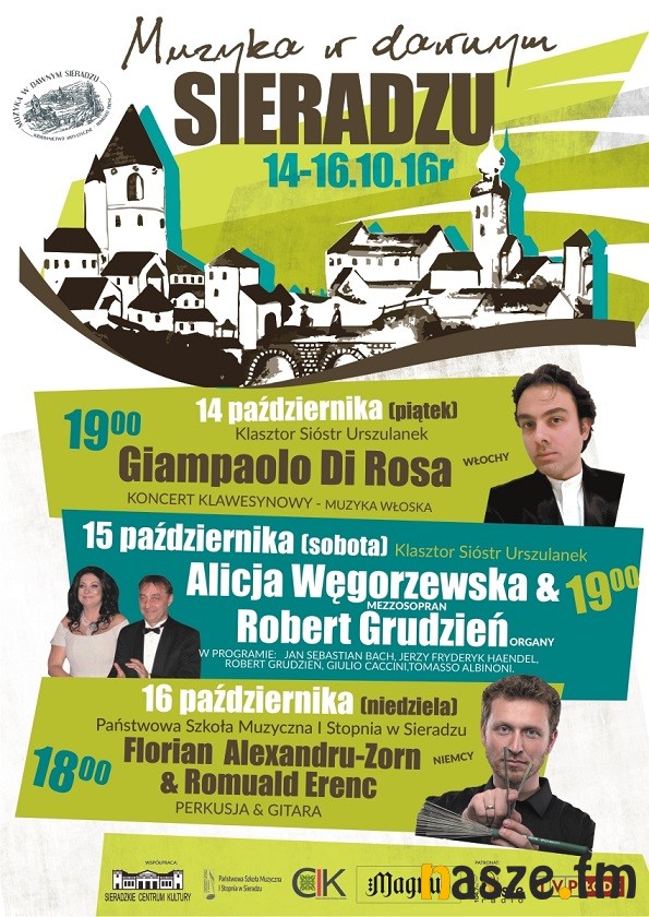 To cykl koncertów organizowanych od kilku lat przez Sieradzkie Centrum Kultury. W tym roku odbędą się w dniach 14-16 października. Będzie można za darmo posłuchać muzyki klasycznej w wykonaniu wspaniałych instrumentalistów. W Sieradzu wystąpi też jedna z najlepszych śpiewaczek operowych w naszym kraju.
