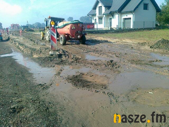 - Stoję przed domem i błoto jak było tak jest. Coś było robione koparką,ale niestety nadal samochodem osobowym nie da się przejechać.Krawężniki zostały usunięte, jest tylko kawałek drogi bo w drugim końcu trwają prace. Można powiedzieć taka ślepa uliczka. Nie ma szans wykręcić dojeżdżając do posesji. Ja właśnie cofając uderzyłem w wystającą, kompletnie nieoznakowaną studzienkę uszkodziłem koło w samochodzie i czekam na przyjazd patrolu.
