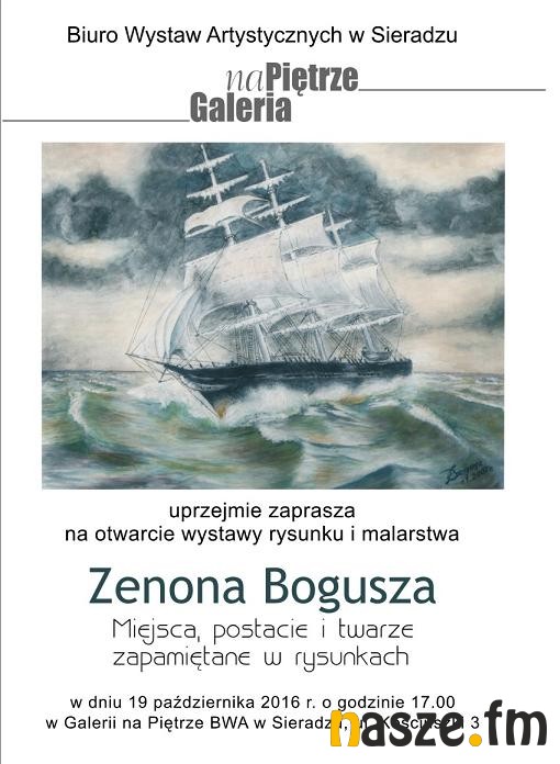 Ekspozycję zatytułowano: " Miejsca, postacie i twarze zapamiętane w rysunkach". Zenon Bogusz urodził się w Sieradzu, obecnie mieszka w Łodzi. Jest emerytowanym inżynierem mechanikiem, pracował jako projektant maszyn włókienniczych.Pasjonat przyrody i historii. Od lat interesuje się malarstwem rzeźbą oraz architekturą. Zwiedza muzea, galerie sztuki o zabytki archeologiczne. W wolnych chwilach kiedy podróżuje utrwala swe wrażenia i emocje w rysunkach. Portretuje oglądane miejsca, napotkane osoby, postacie historyczne, utrwala pejzaże i martwe natury.