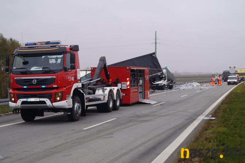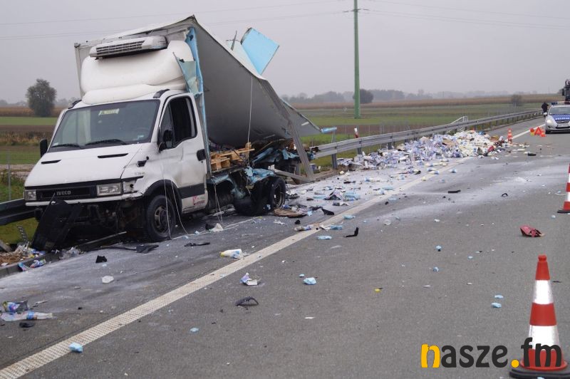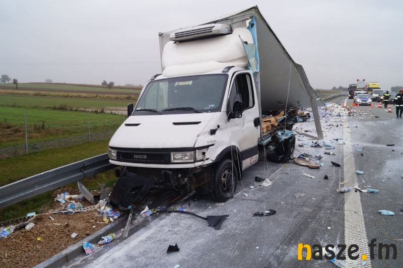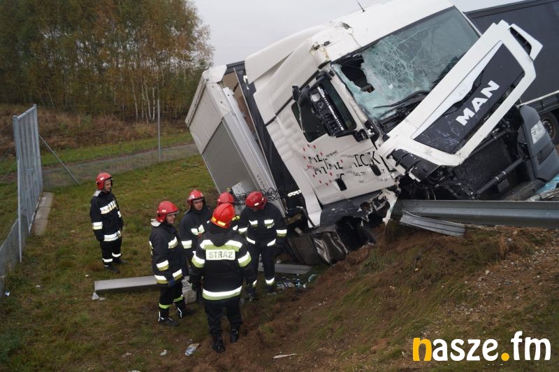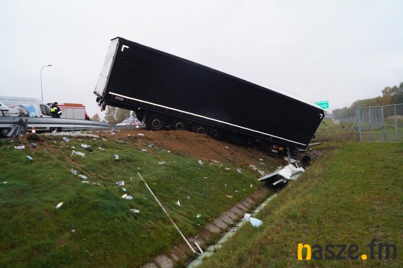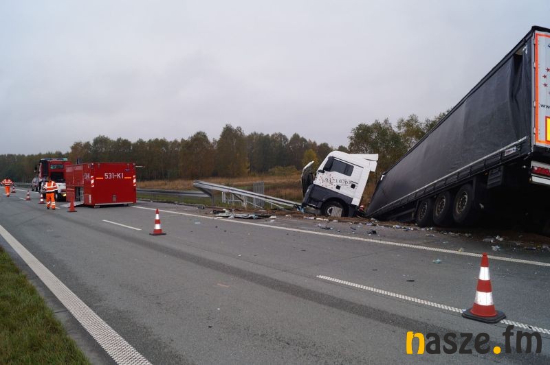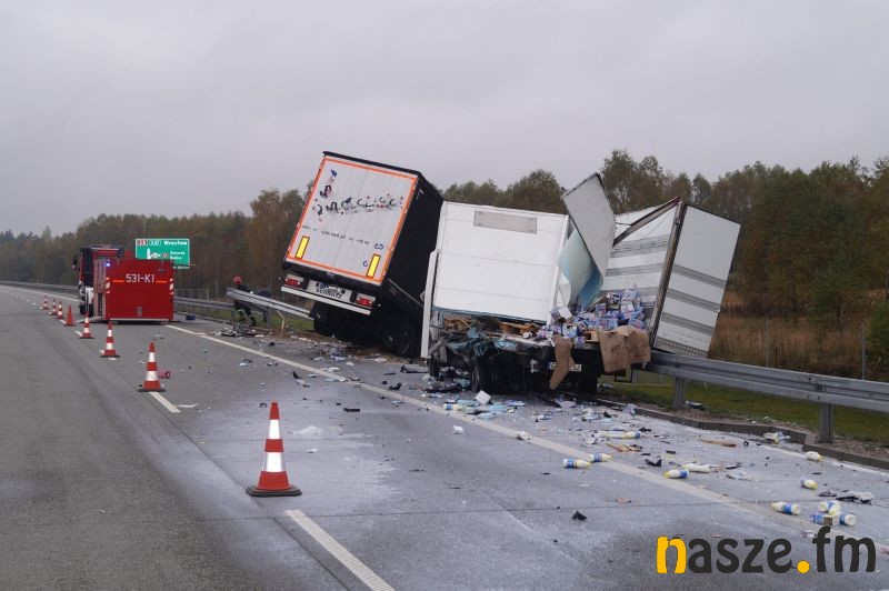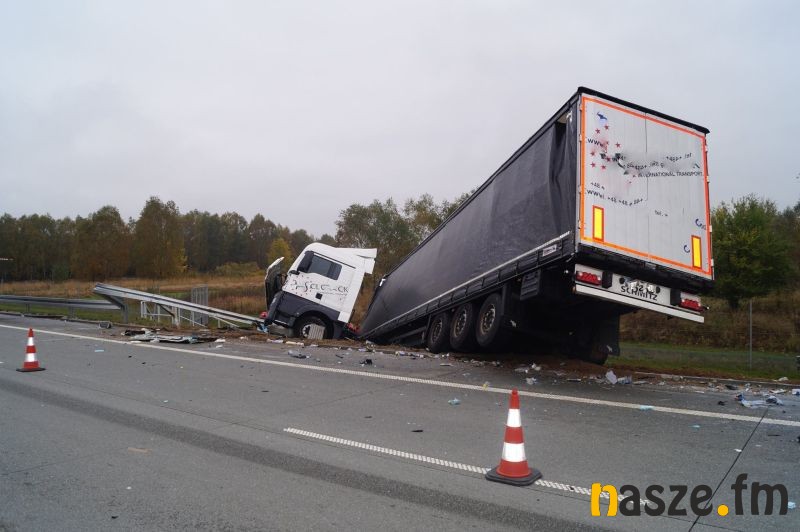 Do zdarzenia doszło po tym jak 37-letni kierowca tira marki Man z Sieradza zjechał na prawą stronę jezdni i uderzył w stojącego na pasie awaryjnym busa marki Iveco, którym kierował 43-letni mieszkaniec Łodzi. W wyniku zderzenia pojazdów łodzianin został ranny; przewieziono go do szpitala w Sieradzu. Z powodu wypadku ruch na ekspresówce dla jadących na Wrocław jest zablokowany. Policja kieruje na węźle Sieradz Wschód na drogę wojewódzką nr 482. Kierowca ciężarówki, który spowodował poranny wypadek był trzeźwy. W przypadku rannego kierowcy busa wynik badania nie jest jeszcze znany.