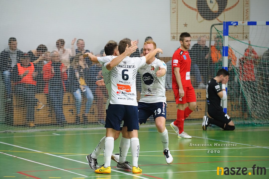 Mecz od początku mógł się podobać, gra była szybka, nie brakowało też akcji podbramkowych. Najdogodniejszą okazję do zdobycia gola miał w 6. minucie Michał Marciniak, który z bliska trafił w słupek bramki Macieja Foltyna. Zarówno bramkarz gości, jak i jego vis-a-vis w drużynie Gatty - Dariusz Słowiński - należeli do wyróżniających się zawodników na placu gry. Pierwszy skapitulował ten drugi tuż na początku drugiej połowy, kiedy dwójkową kontrę wyprowadzili piłkarze Red Dragons, a bramkę na 0:1 strzelił Adam Wachoński. Na wyrównanie miejscowi kibice nie musieli czekać długo. Już w 24. minucie płaskim uderzeniem piłkę do siatki rywali skierował Marciniak. Chwilę później powinno być już 2:1, ale stojący przed pustą bramką Arkadiusz Szypczyński fatalnie przestrzelił. W tym okresie gry tempo meczu jeszcze wzrosło, a obydwa zespoły skupiły się głównie na ataku. Kolejną szansę na objęcie prowadzenia Gatta miała w 28. minucie i znów Szypczyńskiemu zabrakło trochę zimnej krwi. Z czasem gospodarze coraz bardziej spychali Smoki do obrony, rozgrywając dłuższe i dokładniejsze akcje. W 30. minucie po strzale Mateusza Olczaka piłka zmierzała już do bramki, ale w ostatniej chwili Foltyna wyręczył Łukasz Frajtag. W 39. minucie Mistrzowie Polski dostali szansę na piłkę meczową od gości, którzy faulowali po raz szósty w drugiej połowie. Do przedłużonego rzutu karnego podszedł Mariusz Milewski i...przestrzelił. Kiedy wydawało się, że Gatta straci u siebie pierwsze punkty w tym sezonie, piłkarze z Pniew faulowali raz jeszcze i tym razem do piłki podszedł Michał Szymczak. Na 6 sekund przed końcową syreną hala przy Złotej oszalała z radości, bo piłka znalazła się w siatce! Twierdza Zduńska Wola pozostaje niezdobyta! Dodajmy, że Gatta grała dziś bez Daniela Krawczyka, który był wprawdzie w kadrze meczowej, ale nie wszedł na parkiet.