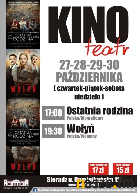 Film "Ostatnia rodzina" to rozgrywająca się na przestrzeni 28 lat warszawska saga słynnej rodziny Beksińskich. Obraz będzie pokazywany w sieradzkim teatrze od jutra ( czwartek 27 października ). W tym tygodniu nadal będzie też można obejrzeć dramat historyczny "Wołyń".