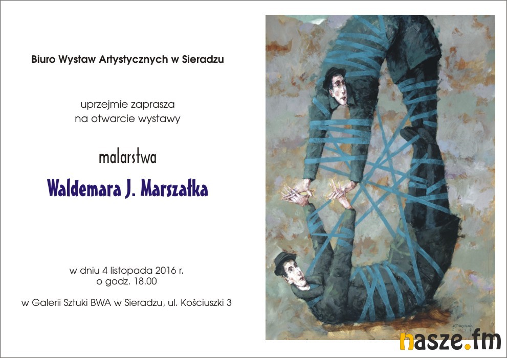 -Waldemar Marszałek mieszka w Gdańsku od bardzo wielu lat. Obecnie jest profesorem na Akademii Sztuk Pięknych w Gdańsku. Zajmuje się malarstwem,grafiką i rysunkiem. Malarstwo Waldemara Marszałka oczywiście w Sieradzu jeszcze jest nieznane, ale każdy kto zobaczy wystawę już zawsze rozpozna każdy obraz autora. Jest to bardzo osobista, jedyna w swoim rodzaju wizja świata i człowieka. Autor opracował i znalazł własny środek wyrazu, własnych bohaterów. Relacje międzyludzkie są tematem jego prac, charakterystyczna deformacja postaci jest nie do pomylenia z żadną inną. - mówiła Małgorzata Szymlet - Piotrowska, dyrektor BWA w Sieradzu.
