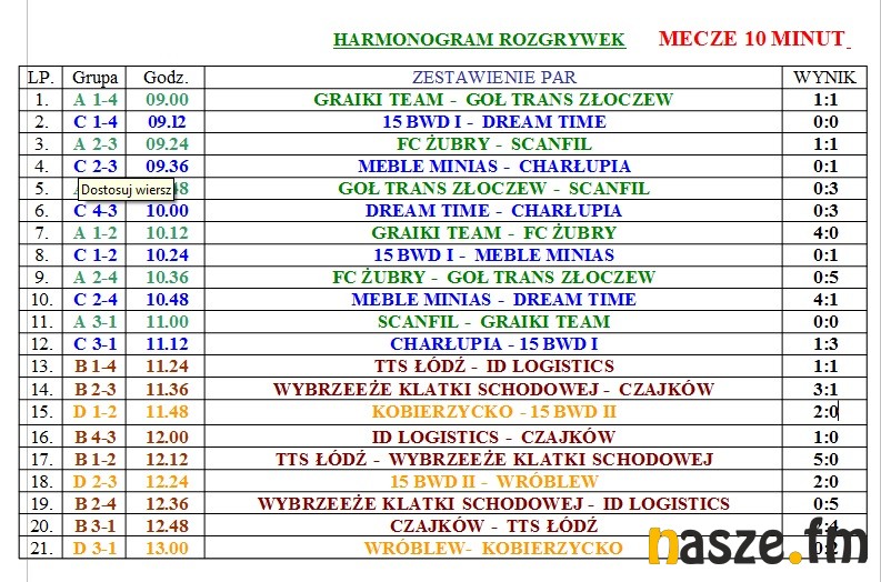 WYNIKI - eliminacje