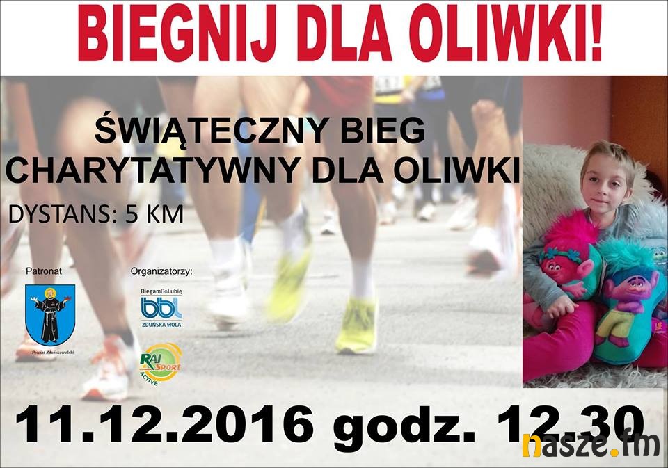 11 grudnia w Zduńskiej Woli odbędzie się Świąteczny Bieg Charytatywny dla Oliwki. Dochód z imprezy w całości zostanie przeznaczony na leczenie młodej zduńskowolanki, która zmaga się z nowotworem oczu. Trwają zapisy.
