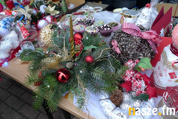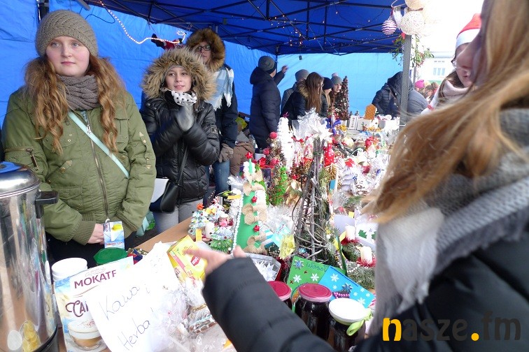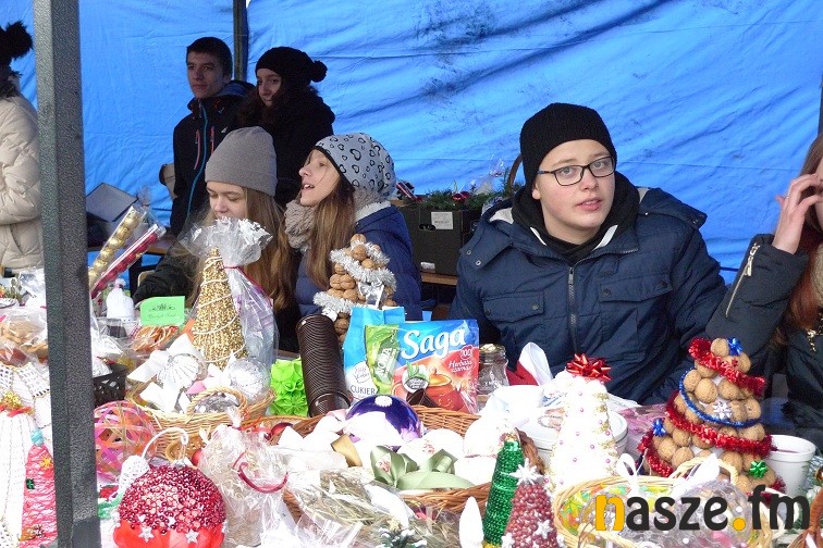Gimnazjaliści narzekali dziś trochę na zimno, ale z entuzjazmem i uśmiechem zachęcali do kupowania naprawdę pięknie wykonanych przedmiotów. W jednych zachwycała precyzja wykonania – aniołki robione na szydełku czy bombki wyklejane drobnymi kwiatkami, w innych pomysłowość- imponująco prezentował się bałwan wykonany z plastikowych kubków. Wśród kupujących przechadzał się też św. Mikołaj. Nie zabrakło muzyki, rano śpiewał szkolny chór, później klimat tworzyły świąteczne przeboje.