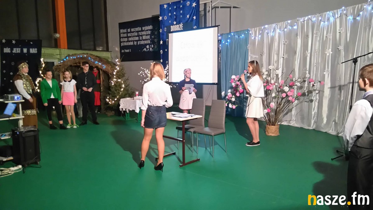 Uczniowie przygotowali także jasełka. Zadali widzom pytanie: Czym dla nas są święta Bożego Narodzenia? Po czym przedstawili historię Małego Księcia, który pojawia się 2 dni przed świętami i szuka stajenki, aby pokłonić się Jezusowi, w czasie kiedy wszyscy zajęci są przygotowaniami do świąt. Nie zabrakło oczywiście świątecznych melodii, które na żywo zagwarantowali gimnazjaliści.