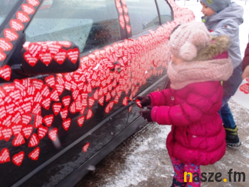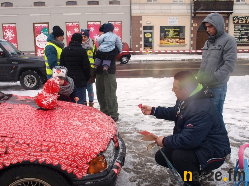 Z kolei na parkingu na placu Wolności można było wziąć udziału w obklejaniu orkiestrowymi serduszkami specjalnie na tę okazje przygotowanego auta - WOŚPmobile.