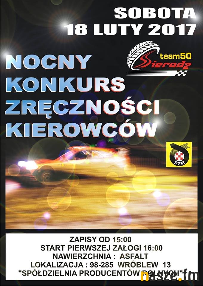 Sieradzkie Stowarzyszenie Sportu Motorowego Team50 zaprasza na kolejny konkurs zręczności kierowców. Po raz pierwszy będzie to nocna edycja tego wydarzenia.