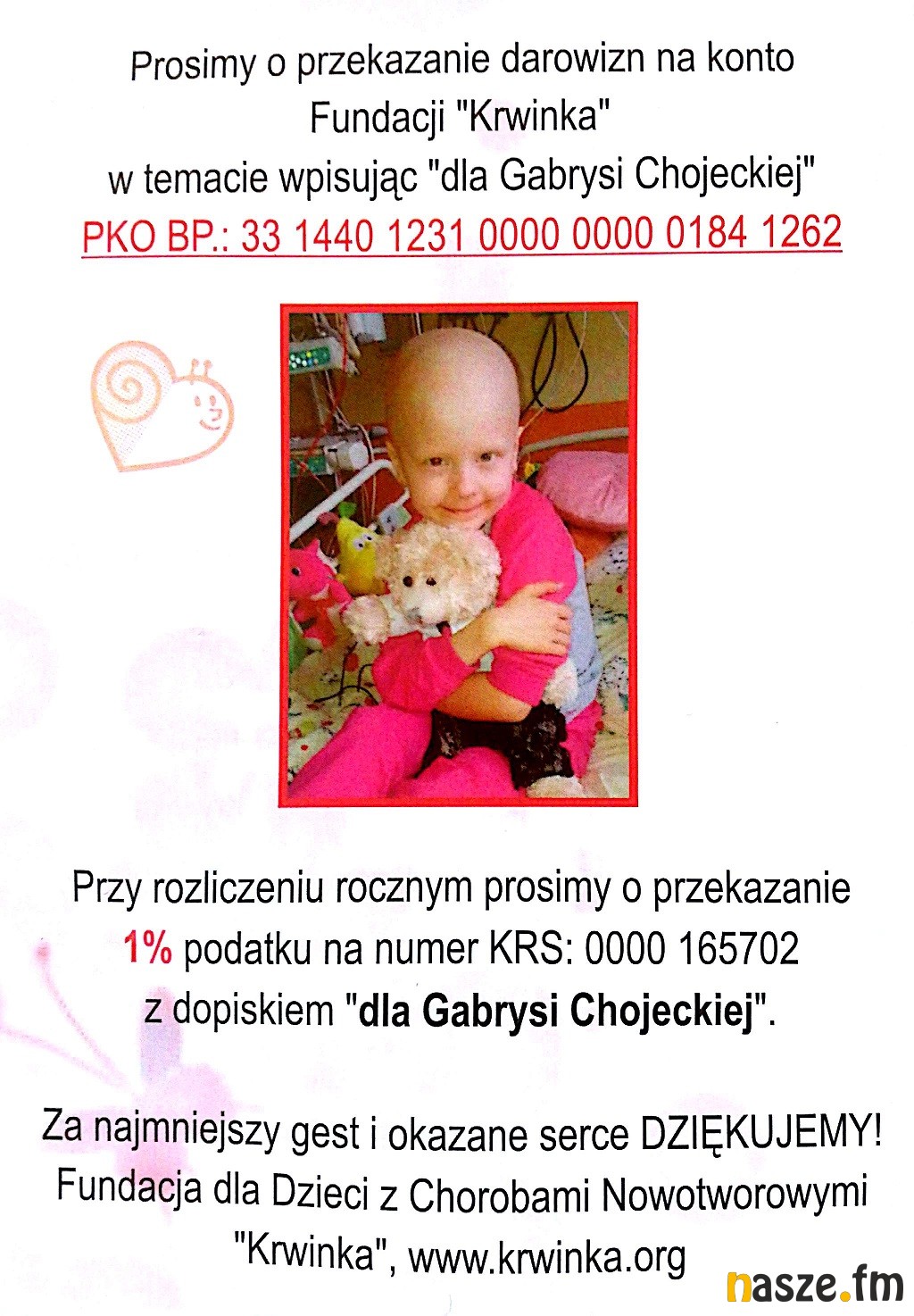 Kilka tygodni temu apelowaliśmy do Was o pomoc dla Gabrysi Chojeckiej. Dziś przekazujemy podziękowania za okazane wsparcie i prośbę o pomoc przy rozliczeniach podatkowych za 2016 r.