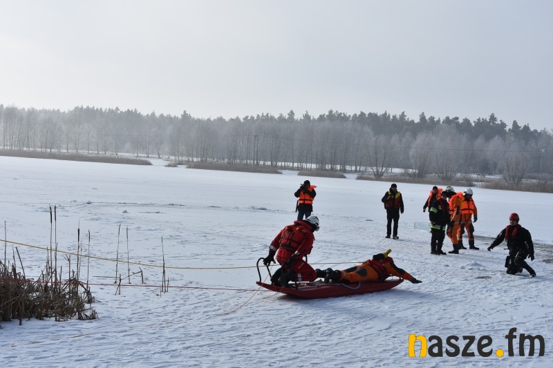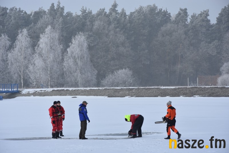 Dzisiaj na zbiorniku Próba odbyło się szkolenie z ratownictwa wodnego na lodzie. W manewrach wzięło udział siedemnastu strażaków Jednostki Ratowniczo-Gaśniczej z Sieradza oraz sześć zastępów OSP z powiatu sieradzkiego.
