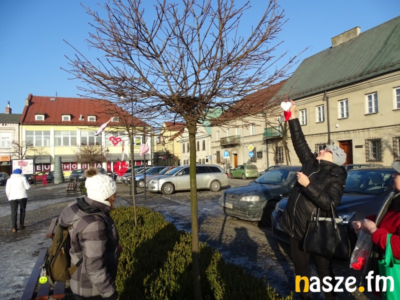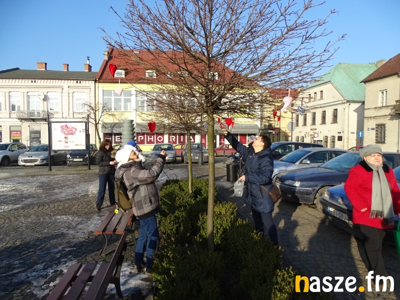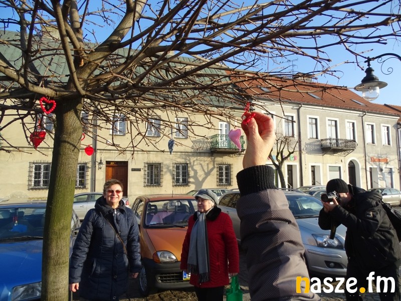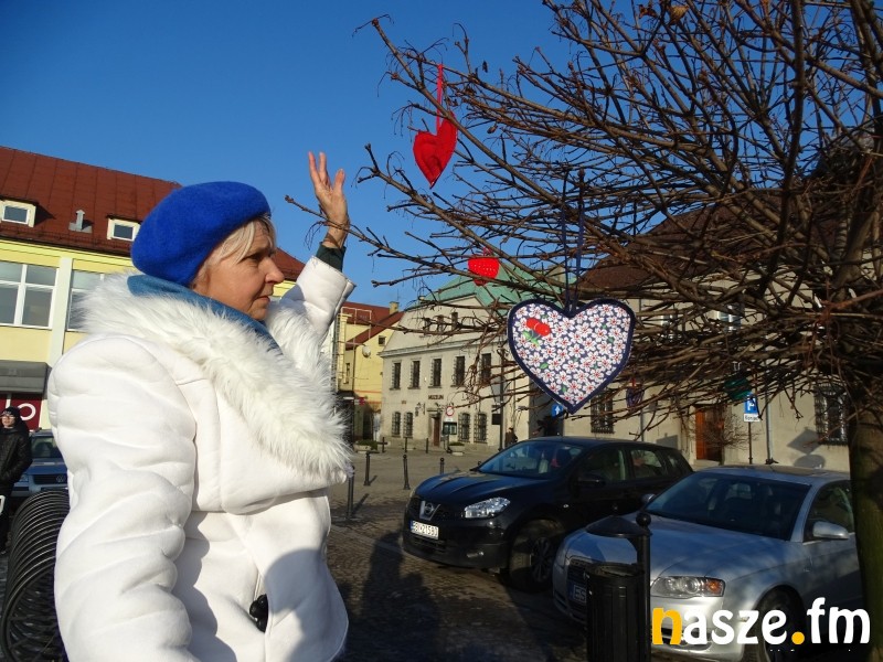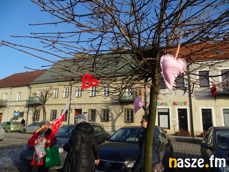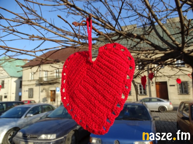 - Postanowiłyśmy z okazji walentynek zrobić na szydełku przeróżne serduszka i rozwiesić je na drzewach wokół Rynku. Chciałybyśmy,żeby dzisiaj te serduszka zostały na tych drzewach,ewentualnie żeby mieszkańcy zabrali je sobie jutro. Są one wykonane przeróżnymi metodami, zwykłym szydełkiem, frywolitką, szyte, jest wiklina papierowa. Każda z nas robiła różne serduszka, takie jakie potrafiła. W ten sposób próbujemy upiększyć Rynek w Sieradzu - mówi Irena Sapiejka z "Szydełkowych Kwadratów"