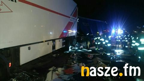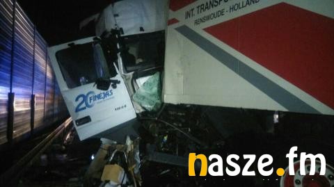 Do tego zdarzenia doszło wczoraj około godz. 22.20 na wysokości msc. Szklana Huta. Na pasie ruchu w kierunku na Łódź zderzyły się 4 ciągników siodłowych z naczepami. Według wstępnych ustaleń kierowcy dwóch pierwszych ciężarówek dowiedzieli się przez CB o utrudnieniach spowodowanych wcześniejszą kolizją, która miała miejsce około kilometra przed nimi. W związku z tą informacją kierowcy zaczęli zwalniać. W tym momencie z nieustalonych powodów kierowca ostatniej ciężarówki marki Mercedes z pełnym impetem uderzył w tył naczepy poprzedzającego go pojazdu. Uderzona w naczepę Scania kierowana przez obywatela Holandii uderzyła w tył naczepy ciężarowego Mana, a ten w tył naczepy pierwszej ciężarówki marki Renault. W wyniku zderzenia pojazdów kierujący ostatnią ciężarówką obywatel Białorusi poniósł śmierć na miejscu. Holenderski kierowca i jego pasażer z obrażeniami ciała zostali hospitalizowani w sieradzkim szpitalu. Wszyscy kierowcy byli trzeźwi, zaś od białoruskiego kierowcy pobrano krew. Trzy godziny później w tym samym miejscu, jednak na przeciwległym pasie ruchu doszło do kolizji drogowej z udziałem ciężarówki marki Iveco z VW Sharan. Jak wstępnie ustalono kierujący ciężarówką 25-letni kierowca prawdopodobnie zagapił się obserwując pracę służb mundurowych na miejscu wypadku i uderzył w tył VW. Wbił się też w barierę energochłonną oraz ekran akustyczny. Kierowcy nie odnieśli żadnych obrażeń ciała. Kierujący ciężarówką został ukarany mandatem karnym.