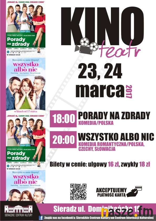 Sieradzkie Centrum Kultury zaprasza w tym tygodniu na seanse dwóch filmów: "Porady na zdrady" i "Wszystko albo nic" . Te dwie komedie będzie można obejrzeć w czwartek i piątek (23 i 24 marca). Seanse pierwszego filmu zaplanowano na godz. 18:00, drugiego - na godz.20:00.