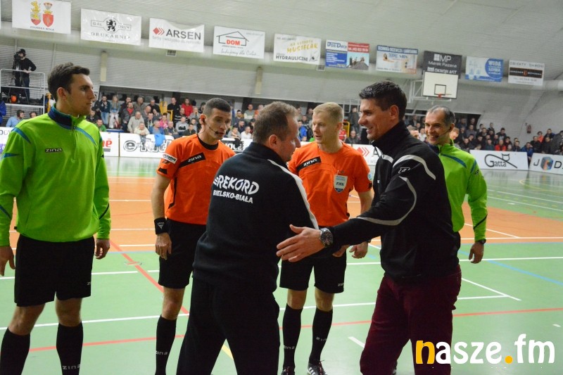 Pierwszy na listę strzelców wpisał się Jan Janovsky, po tym, jak gospodarzom nie udało się wybić piłki sprzed własnego pola karnego, ta trafiła do kapitana Rekordu, a następnie wylądowała w siatce. Na szczęście Gatta szybko odpowiedziała golem, z najbliższej odległości po dobrym dograniu Michała Kałużę pokonał niezawodny Daniel Krawczyk. Kiedy kibice czekali na kolejne trafienie swoich ulubieńców, skontrowali bielszczanie. Michał Marek strzałem z ostrego kąta zaskoczył Dariusza Slowińskiego, który po raz drugi musiał wyciągać piłkę z siatki. Wynikiem 1:2 zakończyła się pierwsza połowa, w której gospodarze mogli co najmniej remisować, trafiając dwa razy w słupek. Z drugiej strony, Rekord też miał kilka znakomitych okazji, ale na posterunku był Słowiński, który przyjmował uderzenia nawet na twarz.
