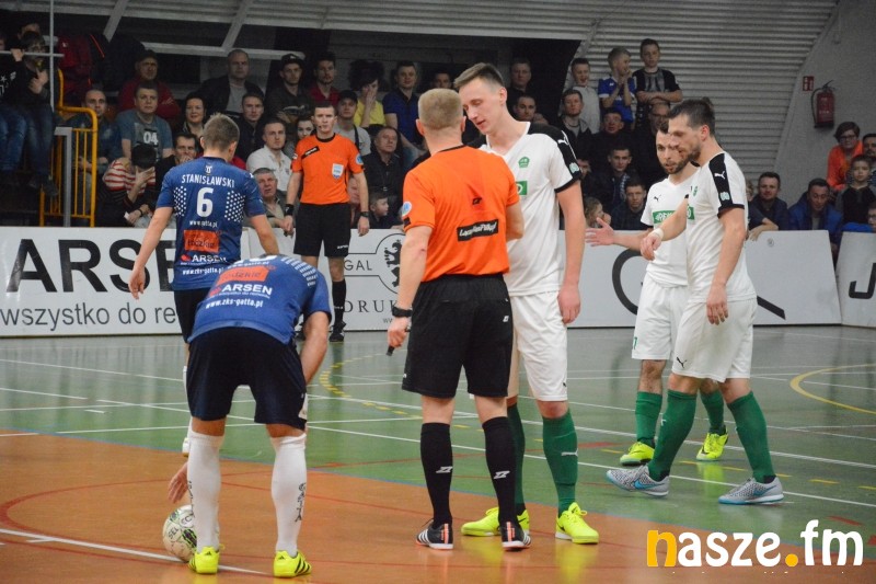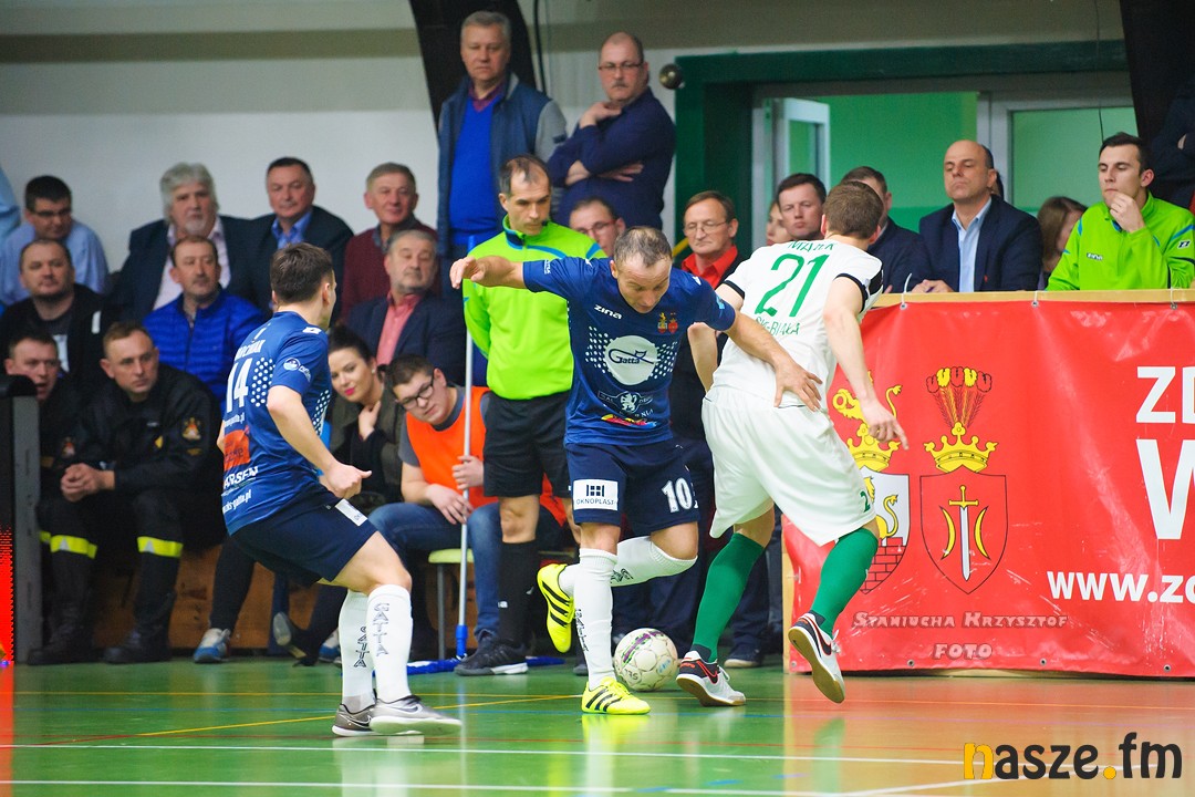 Po przerwie gospodarze wyszli wyżej do graczy Rekordu, spychając ich powoli do defensywy. Ataki Gatty przyniosły upragniony skutek w 25. minucie, kiedy wyrównał Michał Marciniak. Po tym trafieniu zduńskowolanie nabrali wiatru w żagle, a konsekwentna gra przyniosła kolejny efekt bramkowy. Po świetnej dwójkowej akcji Marciniak - Krawczyk, ten drugi po raz kolejny wpisał się na listę strzelców dając swojej drużynie upragnione prowadzenie. Do końca meczu pozostało zbyt dużo czasu, aby myśleć tylko o obronie, ale Mistrzowie Polski musieli się cofnąć pod naporem lidera. Teraz dopiero zrobiło się gorąco, kolejne akcje, kolejne nieprawdopodobne obrony Słowińskiego, a po nich...rzut karny dla gospodarzy! Za zagranie piłki ręką w polu karnym przez Janovskiego szansę na podwyższenie wyniku dostał Michał Szymczak, który niestety przegrał pojedynek z Nawratem, który wszedł na boisko tylko na jedną akcję. Goście zwietrzyli swoją szansę i wycofali bramkarza i wtedy...stało się to, na co czekała cała hala. Po jednym z przechwytów precyzyjnie do pustej bramki uderzył Marciniak i było już 4:2! Tego prowadzenia Mistrzowie Polski już nie pozwolili sobie wyszarpać. Po spotkaniu piłkarze Gatty zgodnie podkreślali, że wrócili z dalekiej podróży i walka o tytuł pozostaje otwarta. Strata do wciąż prowadzącego Rekordu stopniała do 5 punktów. Warto dodać, że wspaniale spisali się dziś nie tyko piłkarze, ale również kibice, którzy jak zwykle nie zawiedli i zadbali o świetną atmosferę na trybunach. Te ostatnie były wypełnione prawie do ostatniego miejsca, w Zduńskiej Woli padł dziś chyba rekord frekwencji w tym sezonie.