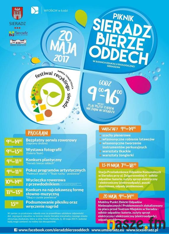 W tygodniu poprzedzającym finał festiwalu, czyli od 15 do 19 maja, w godzinach od 7:30 do 18:00 na Stacji Przeładunkowej Odpadów Komunalnych w Sieradzu, przy ulicy Dzigorzewskiej 4 zbierane będą następujące odpady: