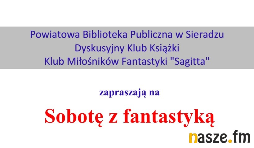 Do udziału w wydarzeniu zapraszają: Powiatowa Biblioteka Publiczna w Sieradzu, Dyskusyjny Klub Książki - Klub Miłośników Fantastyki "Sagitta"