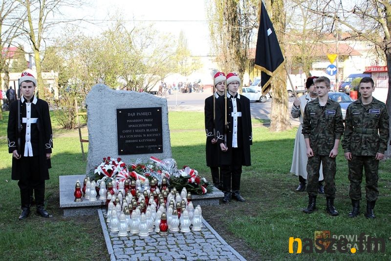 Burmistrz Błaszek Karol Rajewski oraz radni Klubu Polskiego Stronnictwa Ludowego spotkali się o godz. 18:30 pod Pomnikiem Ofiar Katastrofy Smoleńskiej i Zbrodni Katyńskiej. Oddali hołd pomordowanym w Katyniu, złożyli kwiaty oraz zapalili 96 zniczy ku pamięci ofiar tragicznego wypadku samolotu w Smoleńsku. Nie zabrakło delegacji ze szkół podstawowych i gimnazjów, druhów i druhem z OSP Błaszki, harcerzy, przedstawiciela Młodzieżowej Rady Doradczej Burmistrza, pracowników Urzędu oraz mieszkańców Błaszek. Hymn narodowy odegrała miejscowa orkiestra dęta. Piotr Rolirat, dyrektor Szkoły Podstawowej w Błaszkach odczytał apel pamięci wymieniając z imienia i nazwiska ofiary katastrofy lotniczej i Zbrodni Katyńskiej. Zebrani wokół pomnika uczestnicy uczcili pamięć ofiar minutą ciszy.