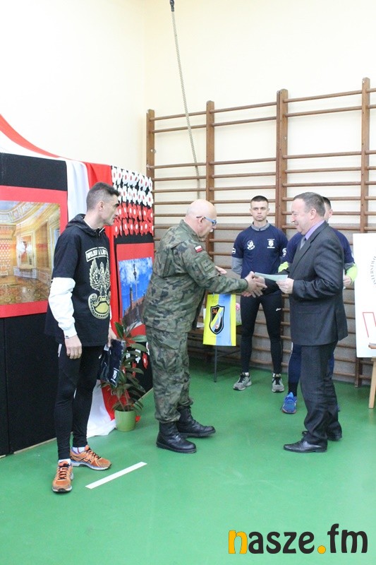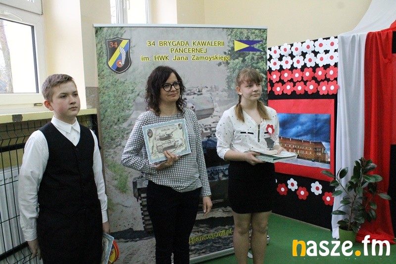 Następnie starszy chorąży Daniel Sienkiewicz podsumował konkurs plastyczny pt. „Sztafeta wspólnych serc”. Uczniowie, którzy zajęli pierwsze trzy miejsca otrzymali pamiątkowe dyplomy i nagrody rzeczowe.