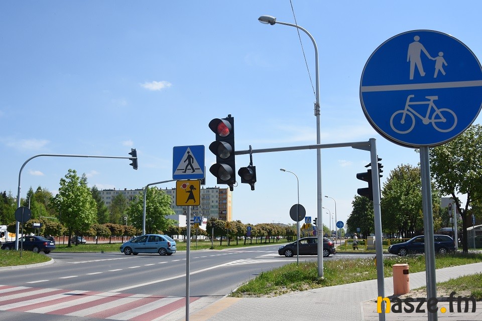 Nie wiem czy naprawdę żadne służby nie obchodzą bezsensownie ustawione światła w Sieradzu? Policja, Straż Miejska??