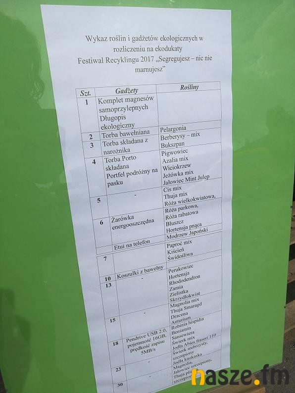 Za odpady dostarczone do najbliższego piątku na Stację Przeładunkową Odpadów Komunalnych w Sieradzu otrzymacie ekodukaty, które podczas sobotniego pikniku Sieradz bierze oddech wymienicie na ekologiczne gadżety oraz rośliny.