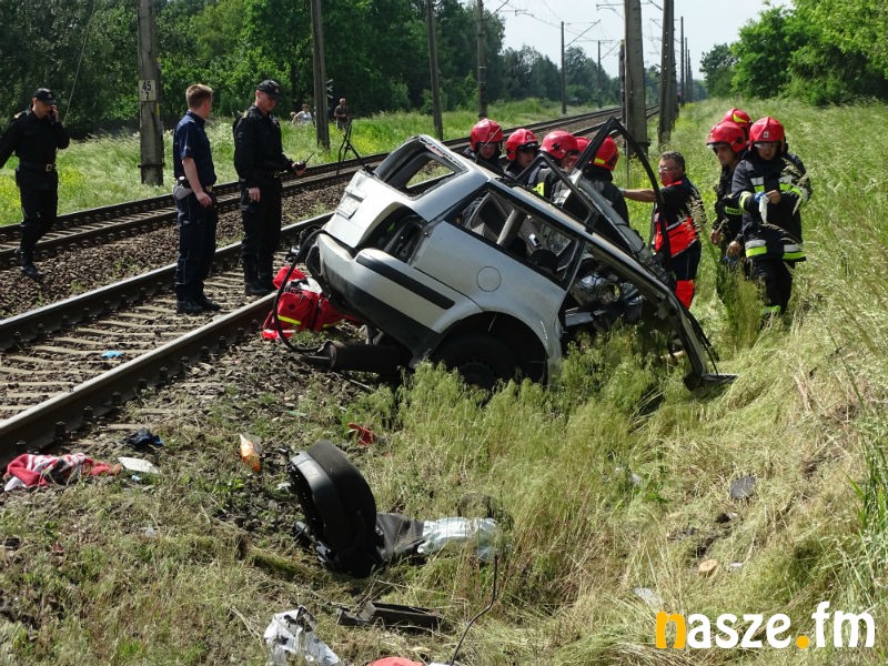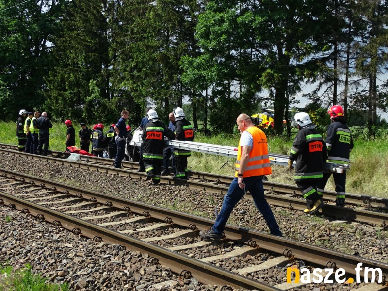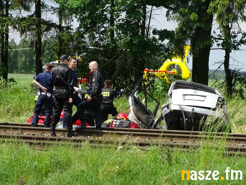 - O sile uderzenia świadczy fakt, że auto został przepołowione. Jedna część samochodu leży jakieś 30 metrów dalej. Ponadto element karoserii samochodu wisiał na trakcji elektrycznej. Po konsultacjach z PKP odłączyliśmy zasilanie na obu nitkach magistrali kolejowej, uprzątnęliśmy część i doprowadziliśmy linie do pełnej sprawności. Wiemy, że pociągiem podróżowało 13 osób. W wyniku ostrego hamowania i zderzenia z autem nikt nie doznał uszczerbku na zdrowiu. Jeżeli chodzi natomiast o poszkodowanych mężczyzn, to zostali zabrani do szpitala w Łodzi śmigłowcem Lotniczego Pogotowia Ratunkowego - powiedział nam na miejscu zdarzenia Grzegorz Styczyński ze zduńskowolskiej straży pożarnej.