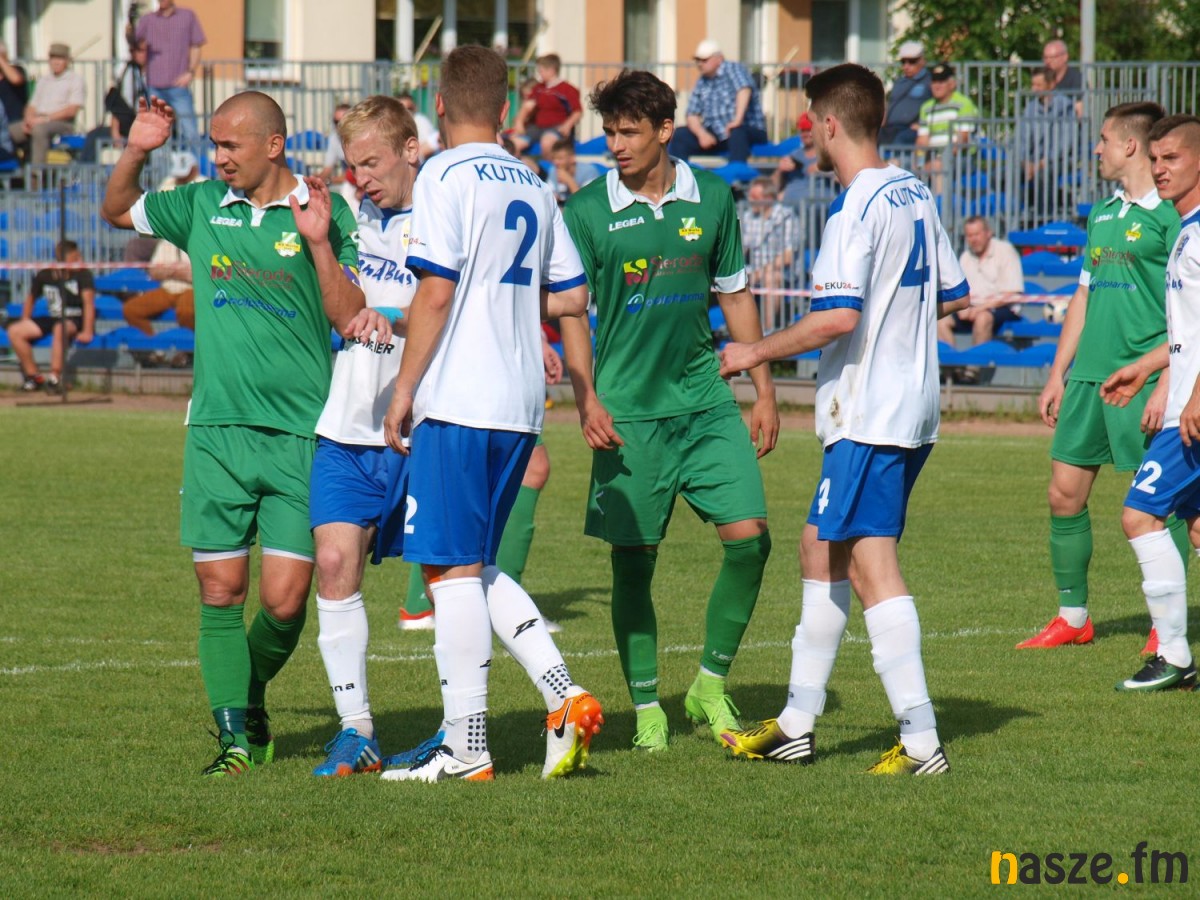 Mecz w Sieradzu rozpoczął się od miłego akcentu. Piłkarze z Kutna utworzyli szpaler wchodzącym na boisko piłkarzom Warty, a działacze gości wręczyli prezesowi Tomaszowi Jóźwikowi pamiątkowa statuetkę, gratulując w ten sposób awansu do III ligi. Zgodnie z wcześniejszymi deklaracjami trener Warty Łukasz Markiewicz dał odpocząć kilku kluczowym piłkarzom. Na ławce rezerwowych usiedli dziś m.in. Maciej Mielcarz, Mariusz Zawodziński, Michał Sitarz i Rafał Swędrowski, a poza kadrą meczową znalazł się Sylwester Pawlak. Szansę dostali młodzi zawodnicy: Dominik Jagieła, Jakub Szulc, od pierwszego gwizdka sędziego zagrali też: Krzysztof Składowski i Mateusz Wlazłowski w bramce. Mecz był wyrównany, ale ze wskazaniem na Wartę. Gospodarze stworzyli sobie przed przerwa trzy dogodne sytuacje bramkowe, ale trafili dopiero w 50. minucie. Świetną piłkę w pole bramkowe dorzucił z lewego skrzydła Piotr Bartłoszewski, a z bliska głową do siatki trafił Marcin Kobierski. 10 minut później faulowany w polu karnym był Kamil Zagajewski, a rzut karny wykorzystał były gracz Warty Rafał Serwaciński. Biało-zieloni mieli przynajmniej kilka znakomitych okazji do objęcia prowadzenia, najlepszą z nich zmarnował Maciej Łabędzki, który uderzał głową z najbliższej odległości, ale przestrzelił. Swoje okazje miał też: Mariusz Kacela, ale na posterunku był bramkarz gości Paweł Sobczak. Już w doliczonym czasie gry przycisnęli gracze z Kutna, ale ostatecznie mecz zakończył się podziałem punktów.