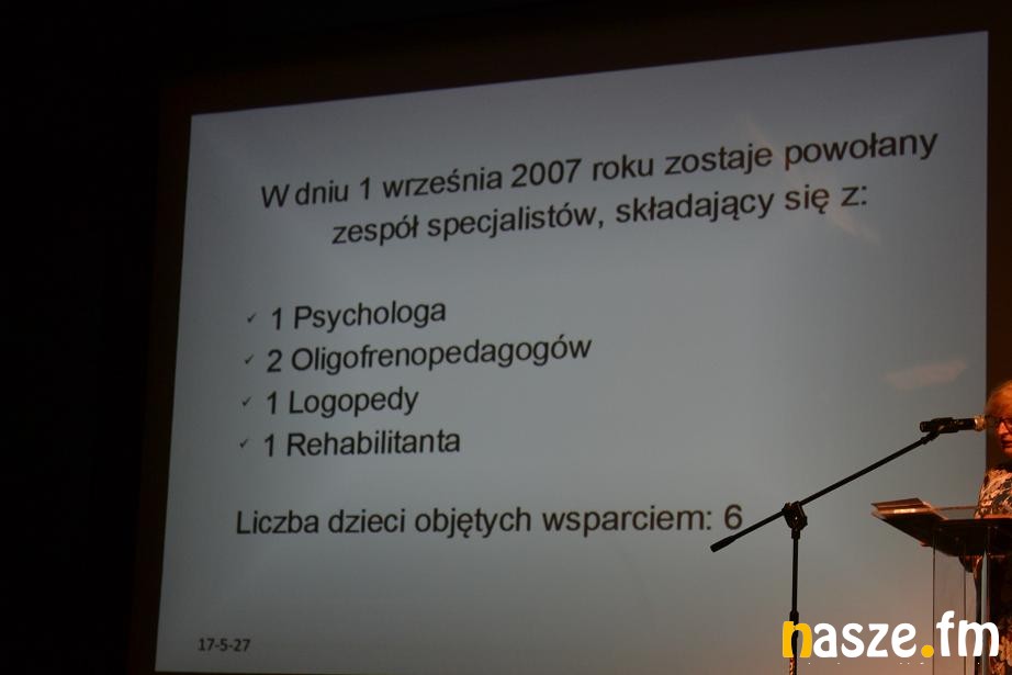- Ta uroczystość to okazja do wspomnień, jak kiedyś wyglądały zajęcia wczesnego wspomagania rozwoju, a jak wyglądają one obecnie. Wczesne wspomaganie jest ważne, ponieważ od momentu wykrycia niepełnosprawności, bądź problemu rozwojowego dziecko może zostać poddane bezpłatnej terapii, która jest wielospecjalistyczna. To forma pomocy zarówno dziecku jak i rodzinie, czyli terapia psychologiczna, pedagogiczna, neurologopedyczna, rehabilitacja, wszystko w zależności od potrzeb i wskazań poradni. Jeśli dziecko wcześniej zostanie poddane terapii, w przyszłości rzutuje to na jego lepsze funkcjonowanie w społeczeństwie. 1 września 2007 roku uruchamialiśmy wczesne wspomaganie z szóstką dzieci, przez te 10 lat udało nam się wesprzeć 184 podopiecznych - mówiła Agnieszka Sapiejka-Reichan, terapeuta ze Specjalnego Ośrodka Szkolno-Wychowawczego w Sieradzu.