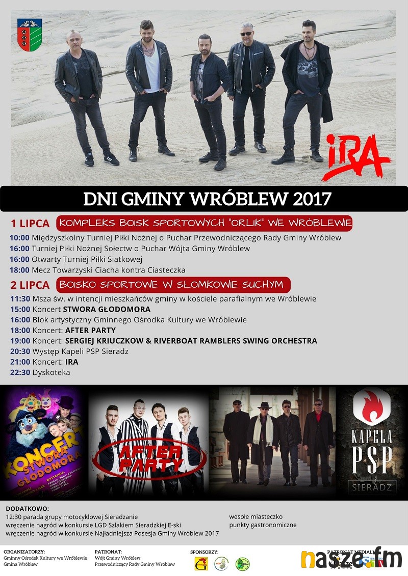 Kolejna gwiazda to Sergiej Kriuczkow z zespołem, który rozpocznie swe spotkanie z publicznością o godz. 19. Dni Wróblewa uświetni też Kapela PSP Sieradz, która wyjdzie na estradę o godz. 20.30. Pół godziny później scena już dla zespołu IRA.