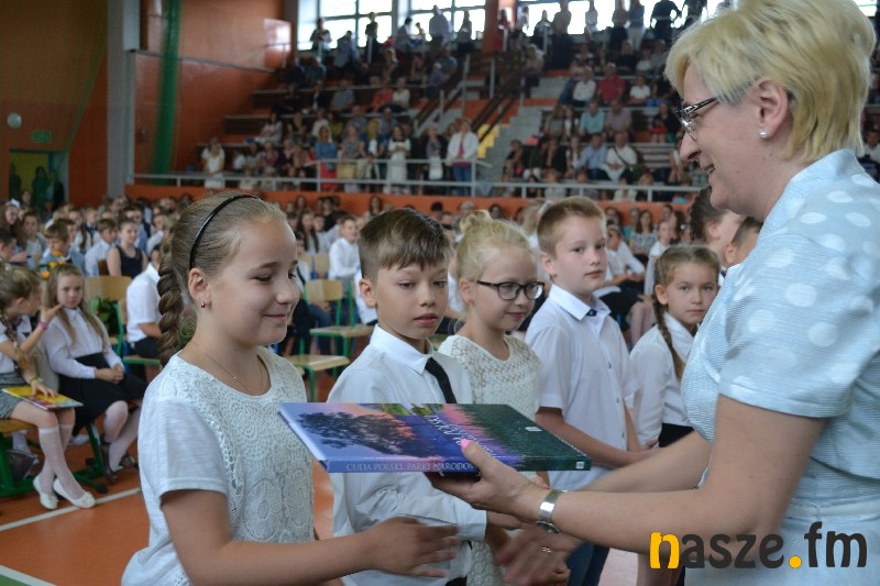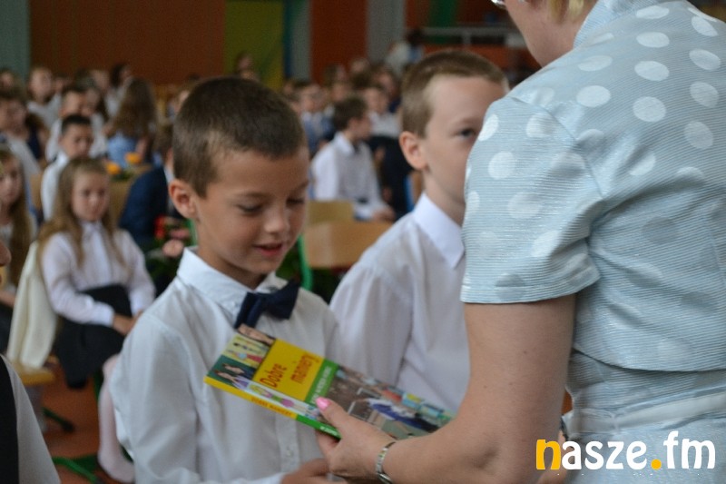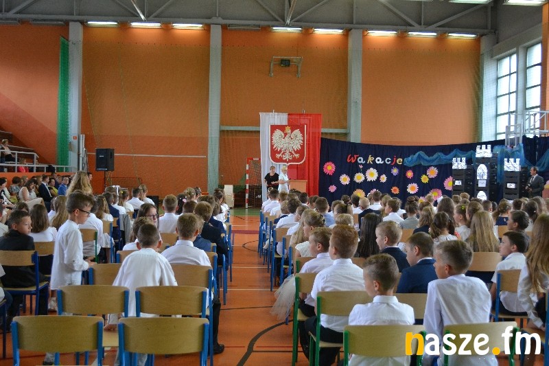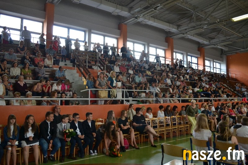 Na sali gimnastycznej zebrali się uczniowie klas trzecich. Nie zabrakło nagród, wyróżnień i dyplomów. Były podziękowania, kwiaty oraz miłe słowa.