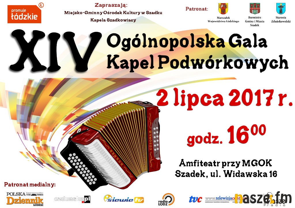 W najbliższą niedzielę (02.07) w amfiteatrze przy Miejsko-Gminnym Ośrodku Kultury w Szadku odbędzie się XIVOgólnopolska Gala Kapel Podwórkowych. W tym roku będzie można usłyszeć 8 kapel z różnych zakątków Polski.