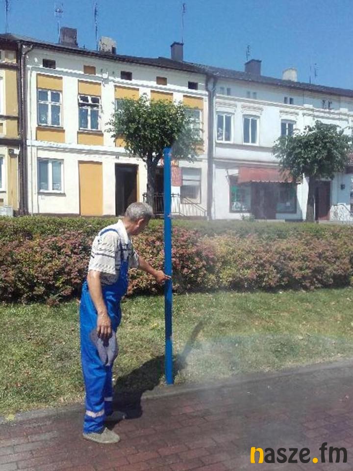 Warta już gotowa na letnie upały. Na centralnym placu tej miejscowości stanęła dająca ochłodę kurtyna wodna.