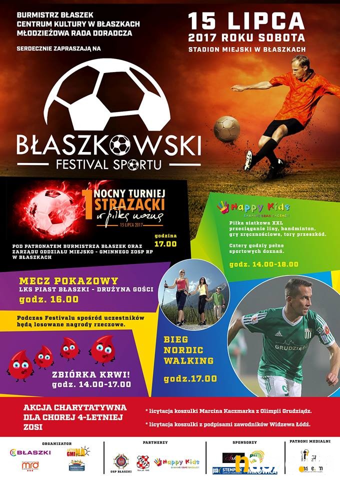 W imieniu organizatorów serdecznie zapraszamy na Stadion Miejski w Błaszkach. Początek Błaszkowskiego Festivalu Sportu o 14:00.