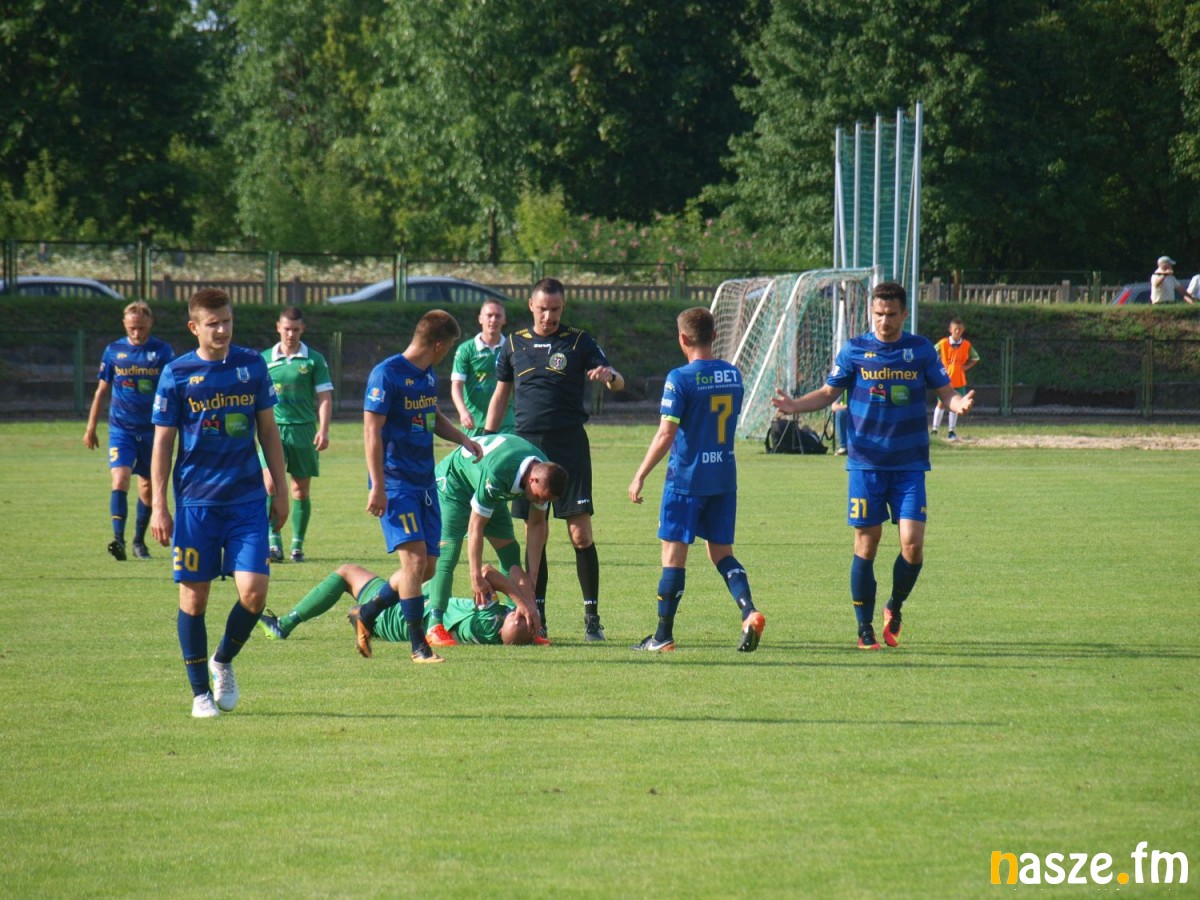 90' żółta kartka dla Siemaszki za faul na Kobierskim