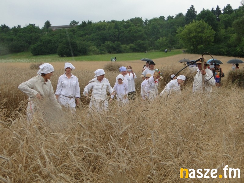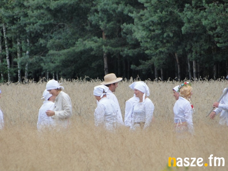 Podczas inscenizacji zaprezentowano kilka epizodów związanych z pracą podczas żniw. Mogliśmy zobaczyć przygotowania do pracy obrzęd nawiązujący do zażynek, koszenie i zbieranie zboża. Pokazano też jak odpoczywano w przerwach w pracy. Nie zabrakło również odniesień do dawnych relacji społecznych na wsi – obrazowała to scena przybycia dziedzica i rozmowy ze żniwującymi chłopami. Cała inscenizacja ilustrowana była starymi pieśniami, które towarzyszyły pracom przy żniwach.