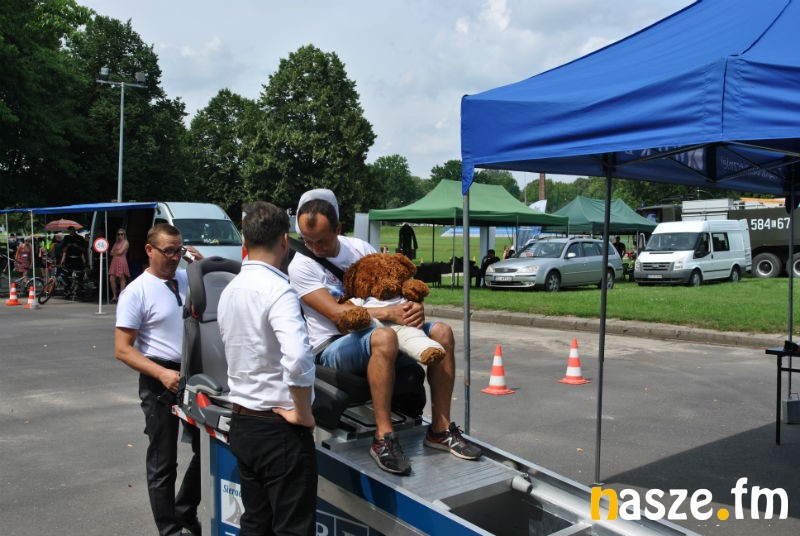 Policjanci wspólnie ze zduńskowolskimi strażakami uczyli też udzielania pierwszej pomocy. Ogromnym zainteresowaniem cieszyły się symulator dachowania i symulatory zderzeniowe, w których można było doświadczyć, jak zachowuje się pojazd, kierowca oraz pasażer w chwili wypadku drogowego. Instruktorzy z Mazowieckiego Oddziału Żandarmerii Wojskowej oraz Wojewódzkiego Ośrodka Ruchu Drogowego w Sieradzu podkreślali, jak w ważną rolę w tego typu zdarzeniach odgrywają prawidłowo zapięte pasy bezpieczeństwa.