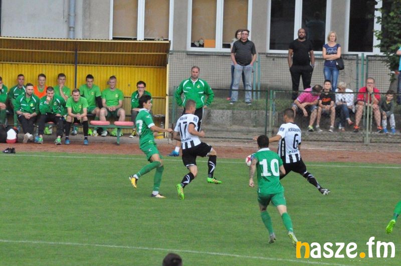 Goście jeszcze przed przerwą mogli zdobyć trzecią bramkę, ale strzał Macieja Korzyma świetnie obronił Maciej Mielcarz. Ostatnie minuty pierwszej części spotkania były bardzo emocjonujące, sieradzanie kilkukrotnie zagrozili bramce ekstraklasowicza i mimo wyniku, mogli być zadowoleni ze swojej gry po 45. minutach.