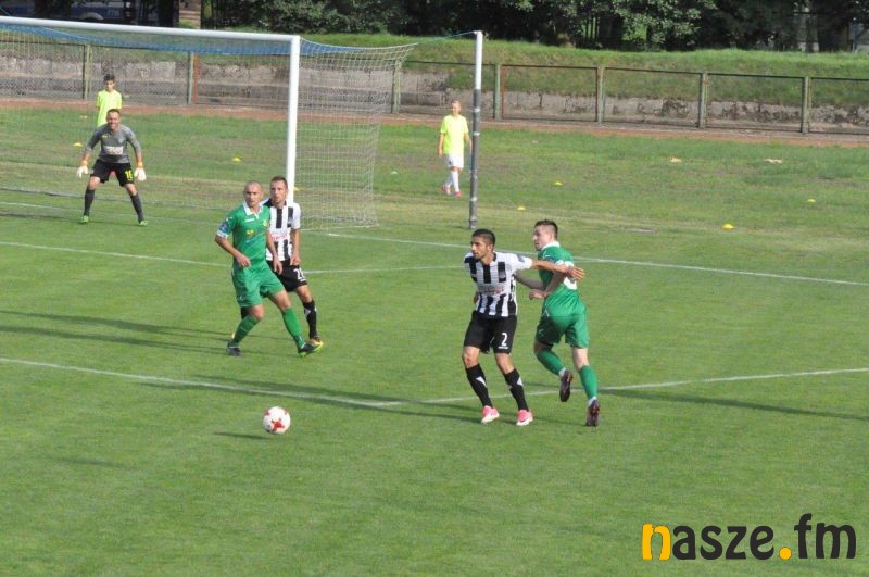 Sieradzanie jeszcze w pierwszej połowie robili wszystko, aby strzelić kontaktową bramkę. W 33. minucie prawą stroną świetnie w pole karane zagrywał Mariusz Zawodziński, ale strzał Marcina Kobierskiego fantastycznie obronił Łukasz Radliński. Gospodarze bardzo często próbowali zaskoczyć Sandecję długimi podaniami, ale w większości przypadków na posterunku był właśnie bramkarz biało-czarnych.