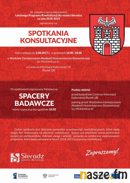 Urząd Miasta Sieradza zaprasza wszystkich mieszkańców na spotkania konsultacyjne i spacery badawcze dotyczące rewitalizacji miasta.