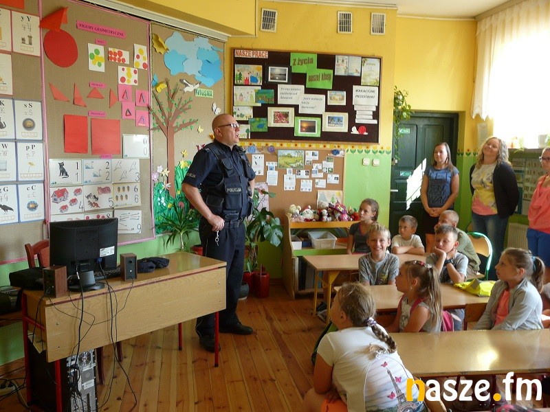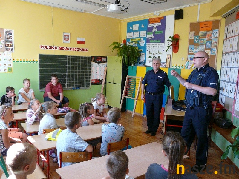 W trakcie spotkań nie zabrakło oczywiście cennych wskazówek dotyczących bezpieczeństwa, w tym bezpieczeństwa pieszych i rowerzystów w ruchu drogowym. Policjanci apelowali też o zachowanie szczególnej ostrożności podczas wypoczynku i zabaw nad wodą. Ostrzegali przed zagrożeniami mogącymi wystąpić w "dzikich kąpieliskach" wskazując, że najbezpieczniejsze jest korzystanie z kąpielisk strzeżonych, a do tego zawsze pod czujnym okiem dorosłego opiekuna. Ostrzegali przed wypadkami, które mogą się zdarzyć podczas prac polowych. Pokazany został sprzęt policyjny, a dzieci mogły odcisnąć swoje palce na przygotowanych kartach do daktyloskopii.