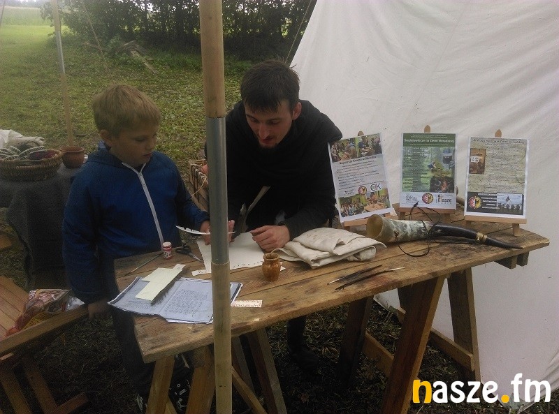 W parku przy pałacu chętni mogli zobaczyć obóz rycerski, w którym można było zobaczyć namioty, elementy uzbrojenia i ekwipunku, czy zobaczyć jak wyglądała w tej epoce praca kowala. Było też stanowisko, gdzie wielu chwytało za gęsie pióro i odtwarzało własnoręcznie ówczesne pismo.