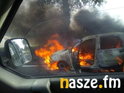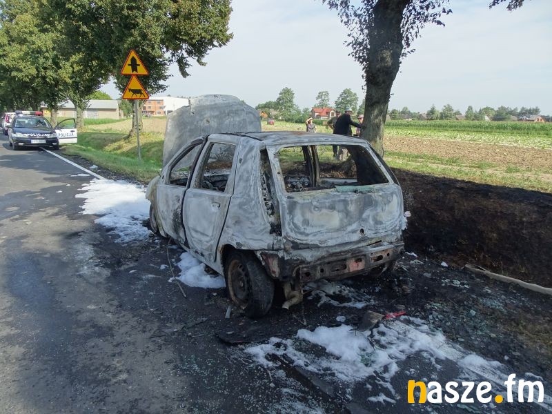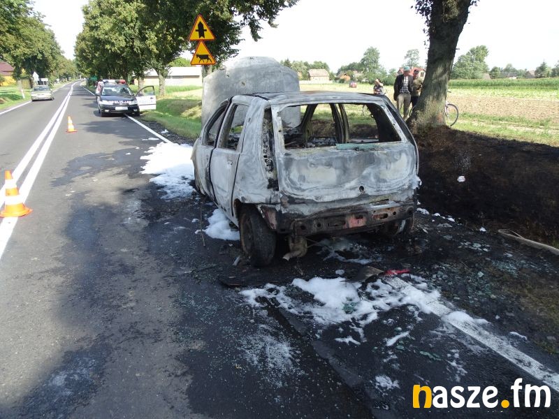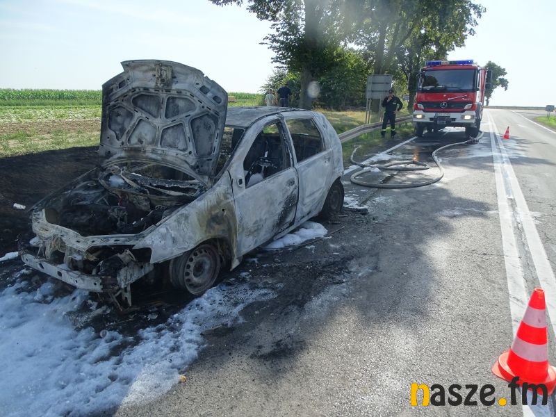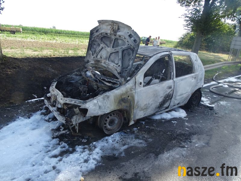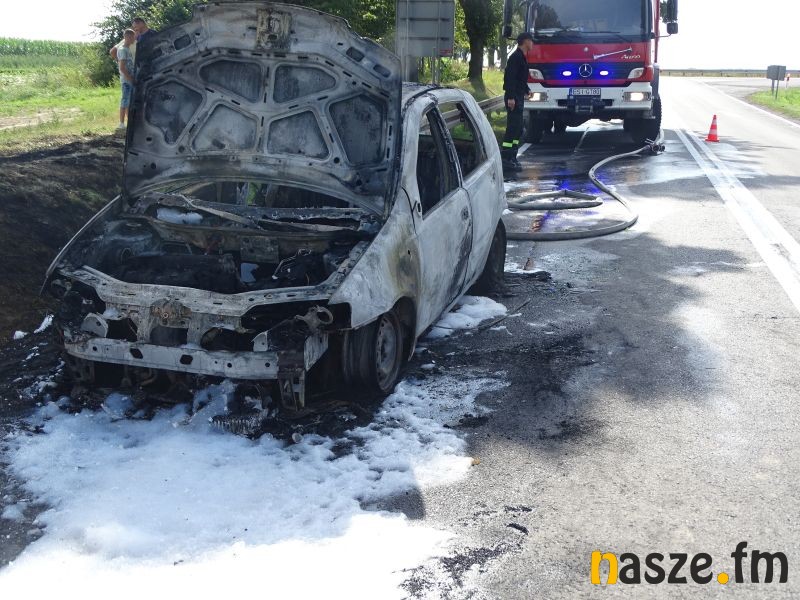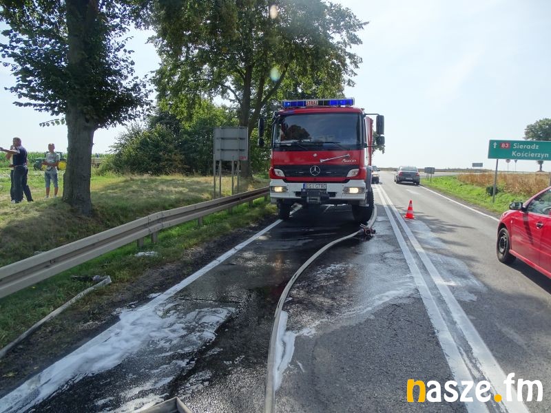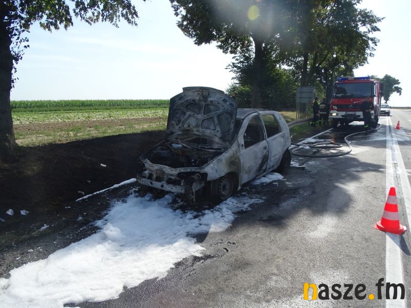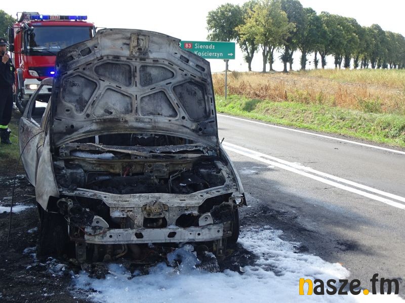 Na trasie z Sieradza na Wartę tuż przed Baszkowem, na skrzyżowaniu z drogą na Kościerzyn palił się Fiat Punto.