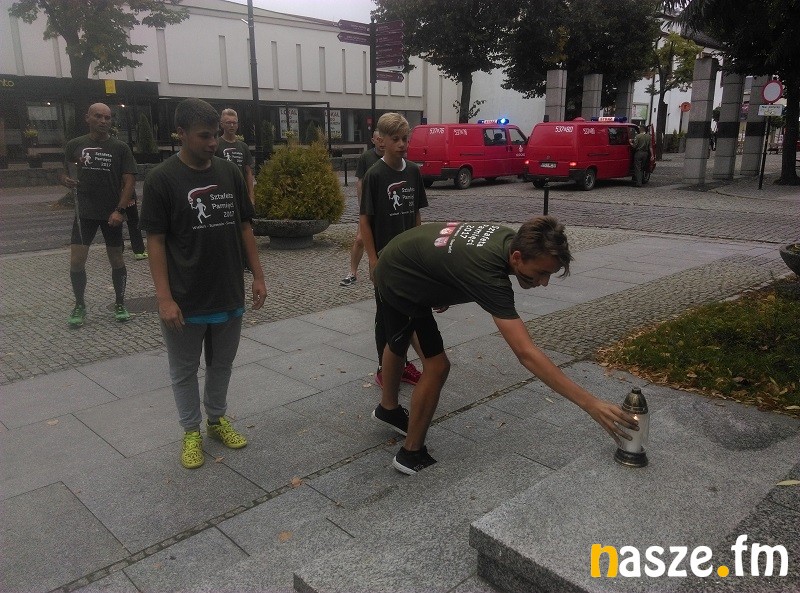 Jeszcze przed rozpoczęciem uroczystości w Męce dotarli tam uczestnicy sztafety pamięci niosąc ogień zapalony w Nowej Polskiej Wsi, skąd startowały niemieckie samoloty bombardujące 1.09.1939r. nad ranem Wieluń. Jej celem było upamiętnienie ofiar tamtych tragicznych zdarzeń oraz bohaterów II wojny światowej. Sztafetę Pamięci podzielono na dwa etapy (Nowa Polska Wieś - Burzenin i Burzenin - Sieradz). Zorganizowali ją burzenińscy harcerze z hufca ZHP im. Sieradzkich Zakładników 1939r.