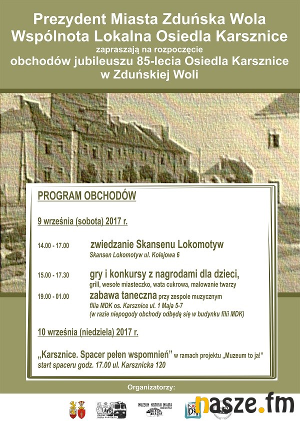 Osiedle Karsznice w Zduńskiej Woli zaczyna obchodzić obchody związane z 85-leciem istnienia. Wiele dziać się będzie w najbliższy weekend.