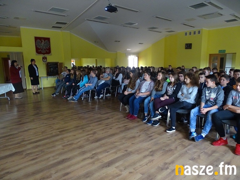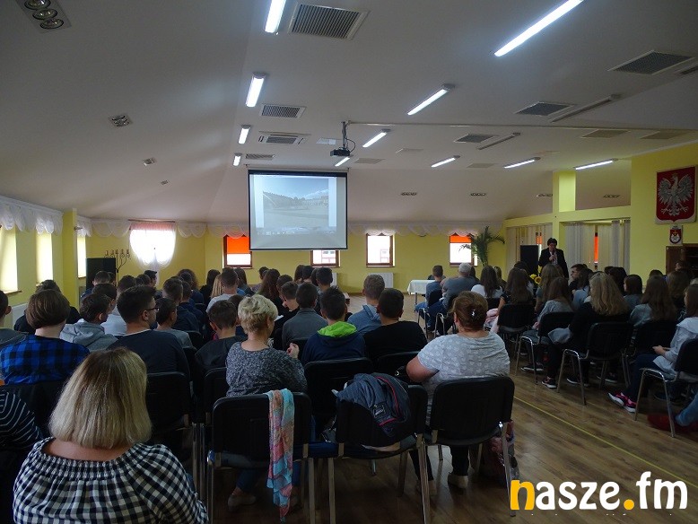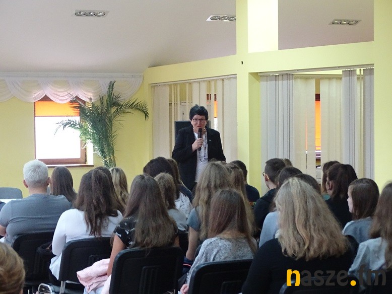 Podczas prelekcji Wiesława Sujecka, prezes PTTK w Sieradzu przybliżyła gimnazjalistom z Burzenina historie o stolicy Powiatu Sieradzkiego.