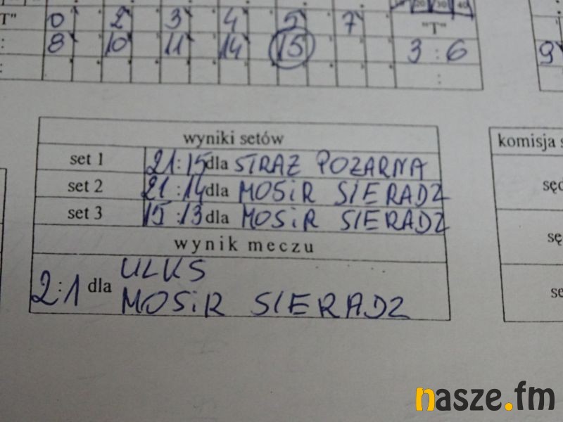 Po zaciętym finale ostatecznie MOSiR wygrał z zespołem Straży Pożarnej 2:1 (15:21, 21:14; 15:13).