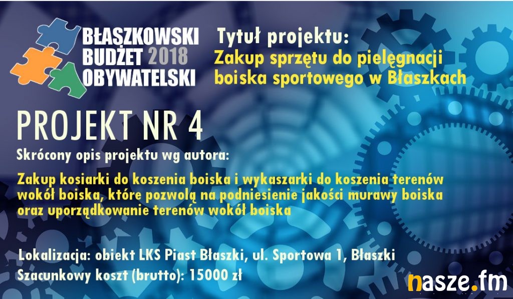 Oto przyjęte propozycje do Błaszkowskiego Budżetu Obywatelskiego na 2018 rok: