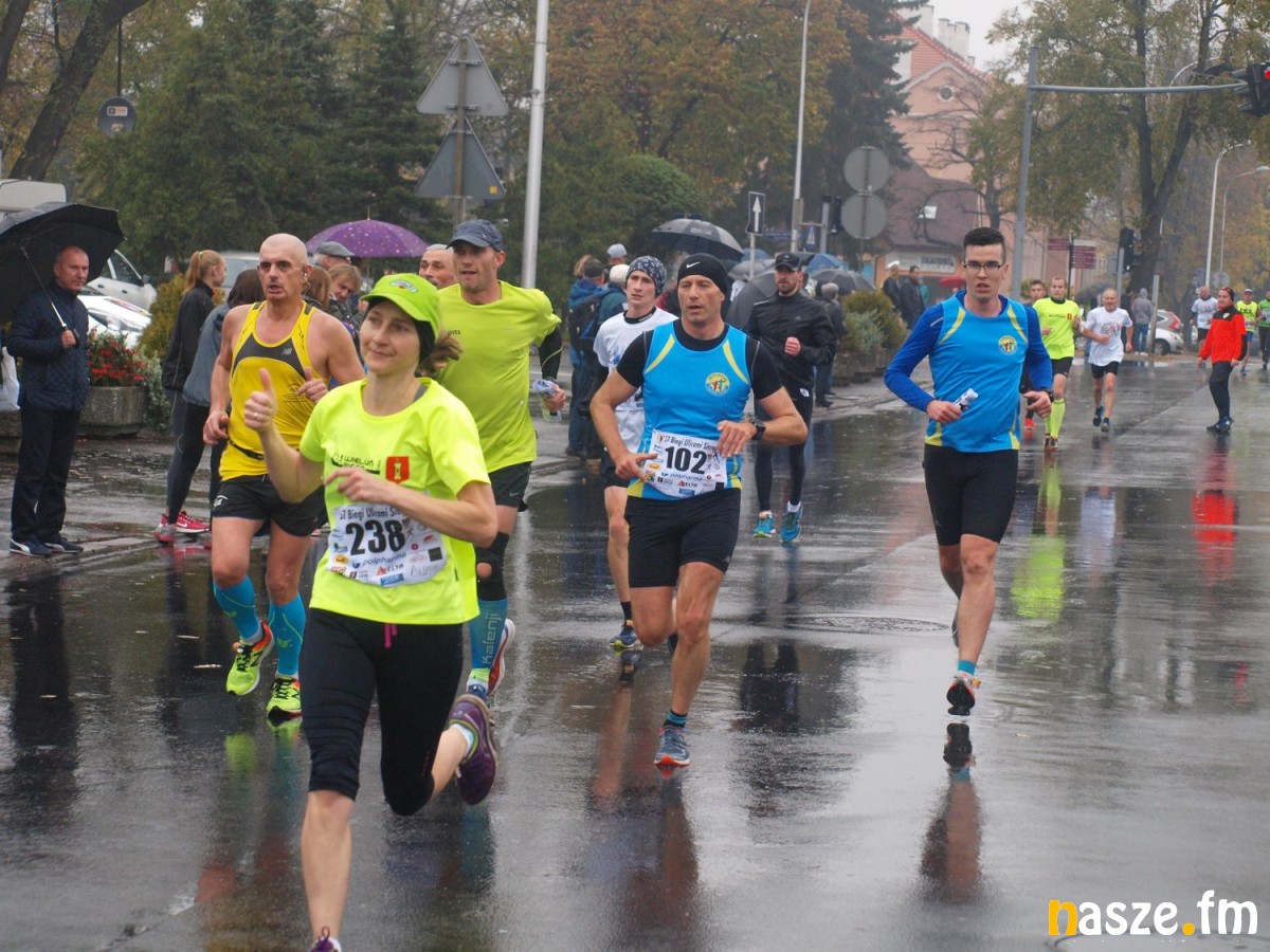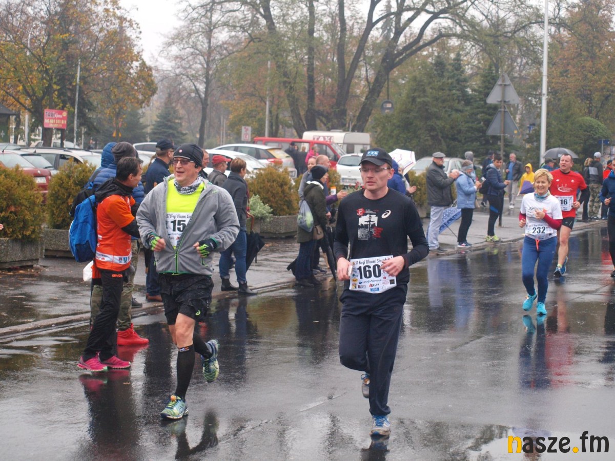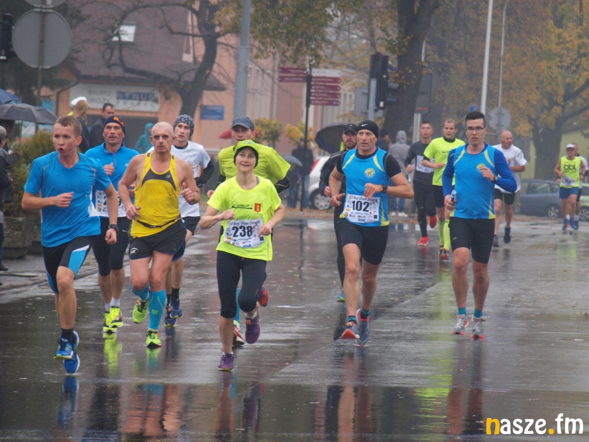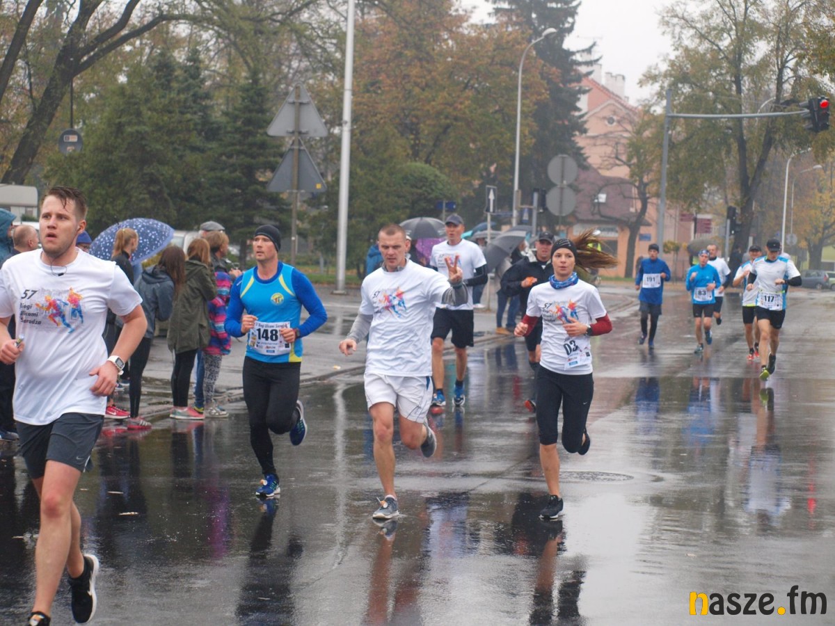 Pogoda nie rozpieszczała uczestników. Deszcz nie mógł jednak odstraszyć prawdziwych miłośników biegania. Jak zwykle największa liczba osób (266) wzięła udział w biegu głównym na dystansie 10 km. Najszybszy na dwóch pięciokilometrowych pętlach był dziś zawodnik RKS Łódź Patryk Stypułkowski, który tym samym poprawił swoje ubiegłoroczne osiągnięcie, przegrał wtedy ze swoim klubowym kolegą Tomaszem Osmulskim. Triumfator 57. edycji Biegów Ulicami Sieradza uzyskał czas 32:35 min, i wyprzedził drugiego na mecie Jędrzeja Hasiurę (także RKS) o blisko półtorej minuty. Jako trzeci linię mety minął wychowanek MULKS MOS Sieradz, obecnie także zawodnik RKS Maciej Nitka. Wśród pań najszybsza była dziś Ewelina Bartocha z Lisowa, która wynikiem 41:51 poprawiła rekord życiowy. Na podium w kategorii kobiet stanęły ponad to: Magdalena Włodarczyk (Wieluń Biega) i Arleta Matysiak (RajSport Active).